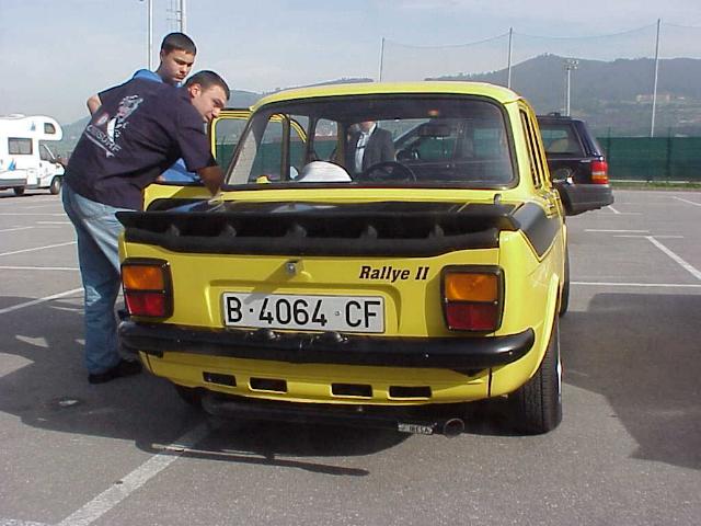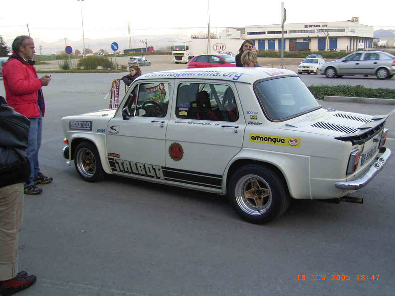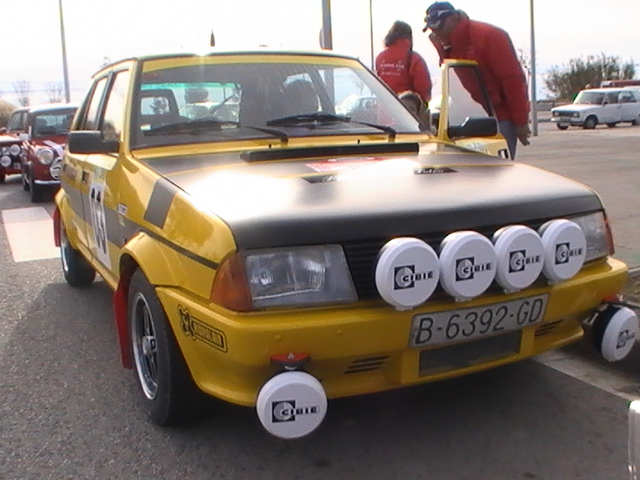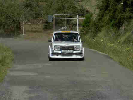 Te dejo lo que tengo hasta el momento Mijares y dos fotos en prueba. Como el coche tiene que pasar por el taller de chapa, intentare manteneros informados de la evolución de la reparación, con comentarios y fotos. Saludos Ángel Crónica protagonizada y emitida por Ángel López Características de su coche: El coche es un Rallye 3, matriculado en Marsella en 1978, y rematriculado en España en el 2003, sus características son: Carrocería reforzada y aligerada con elementos de fibra (capos, puertas traseras, aletas y aletines.) Dirección directa, llantas Targa de 7” con neumáticos Dumlop Sport en medida 200/53/13 Cambio cerrado de Rallye 3 con grupo 8/35 Motor 1600, culata con válvulas de 38/29 con conductos agrandados y pulidos, carburadores Weber de 40 y árbol de levas cruzado. El equipo: piloto Ángel López Minguez (Zorro) copiloto: Beatriz López Borrella (mi hija) Crónica "Norte de Extremadura" La temporada de rallyes 2005 de Madrid ha empezado, y como el 2004 intentare manteneros informados de los resultados y acontecimientos que ocurren, en los que participo. El primero ha sido el “Rallye Norte de Extremadura” que se celebro el día 7 de Mayo por tierras de Plasencia. Las verificaciones fueron el viernes seis, dentro del Pabellón Municipal de Muestras y ahí empezó la historia. Como es normal se me dio un nº bastante alto, el 65, de 71 inscritos y verifique sobre las diez de la noche, un momento en que la gente, se apelotonada en la barra del bar, estaba algo aburrida de ver tanto coche, Mitsu, 306, 205,106, legión de Clios etc. Y entonces hacemos la entrada, ligera rampa de subida, acelero (3500rpm.) y escape libre, suelto el embrague y adentro, fue como si todo el mundo se hubiera despertado del aburrimiento y estalla en un griterío, seguido de un gran aplauso, después de tantos años en las carreras yo creo que ha sido la vez que mas me ha emocionado la gente, a mi lado mi hija (copi) totalmente impactada por ese recibimiento.