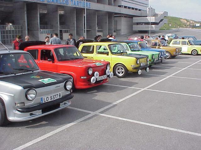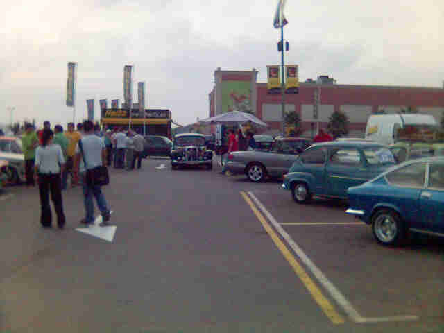 Comenzamos el día quedando con algunos para irnos directamente a Tarrasa al llegar solo somos unos 15 coches pero a medida que avanza la mañana la cosa se anima e incluso desborda un poco a la organización que a un así consigue capear el temporal y la cosa pinta muy bien. A las 14:00 mas o menos comienza el sorteo entre todos los asistentes de un DVD y después un premio al coche mas votado consistente en un navegador GPS. En estos momentos habrán unos 200 coches.