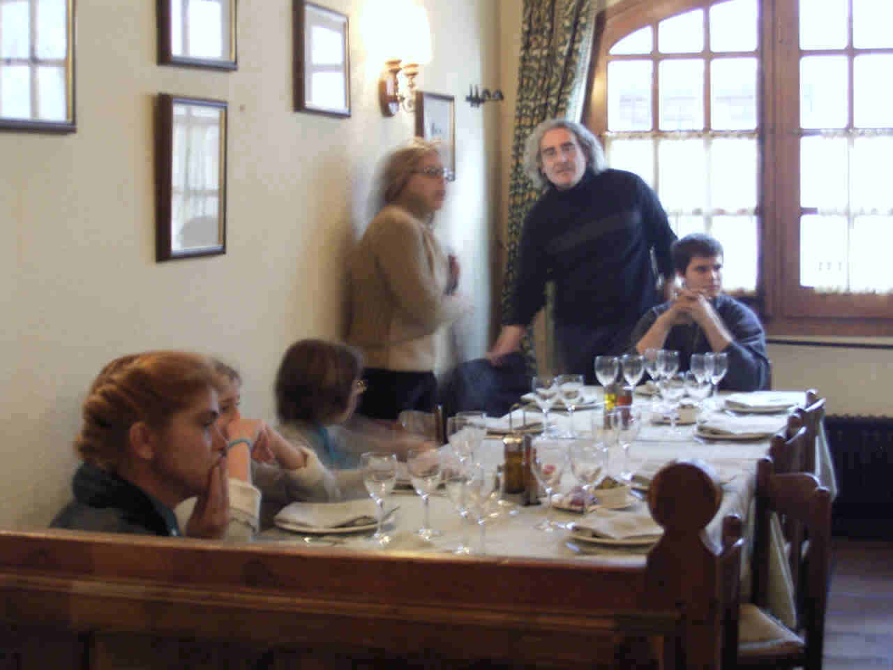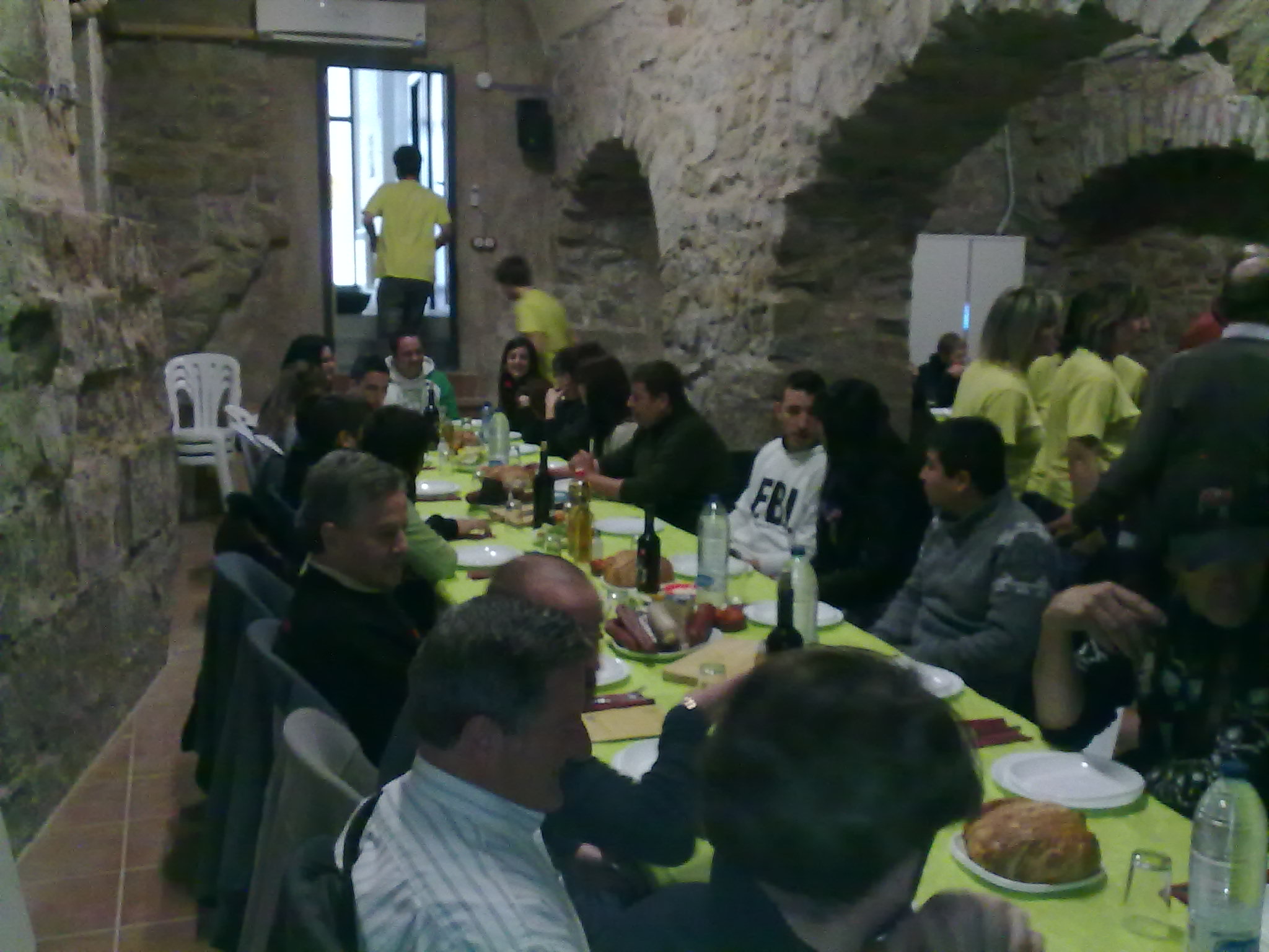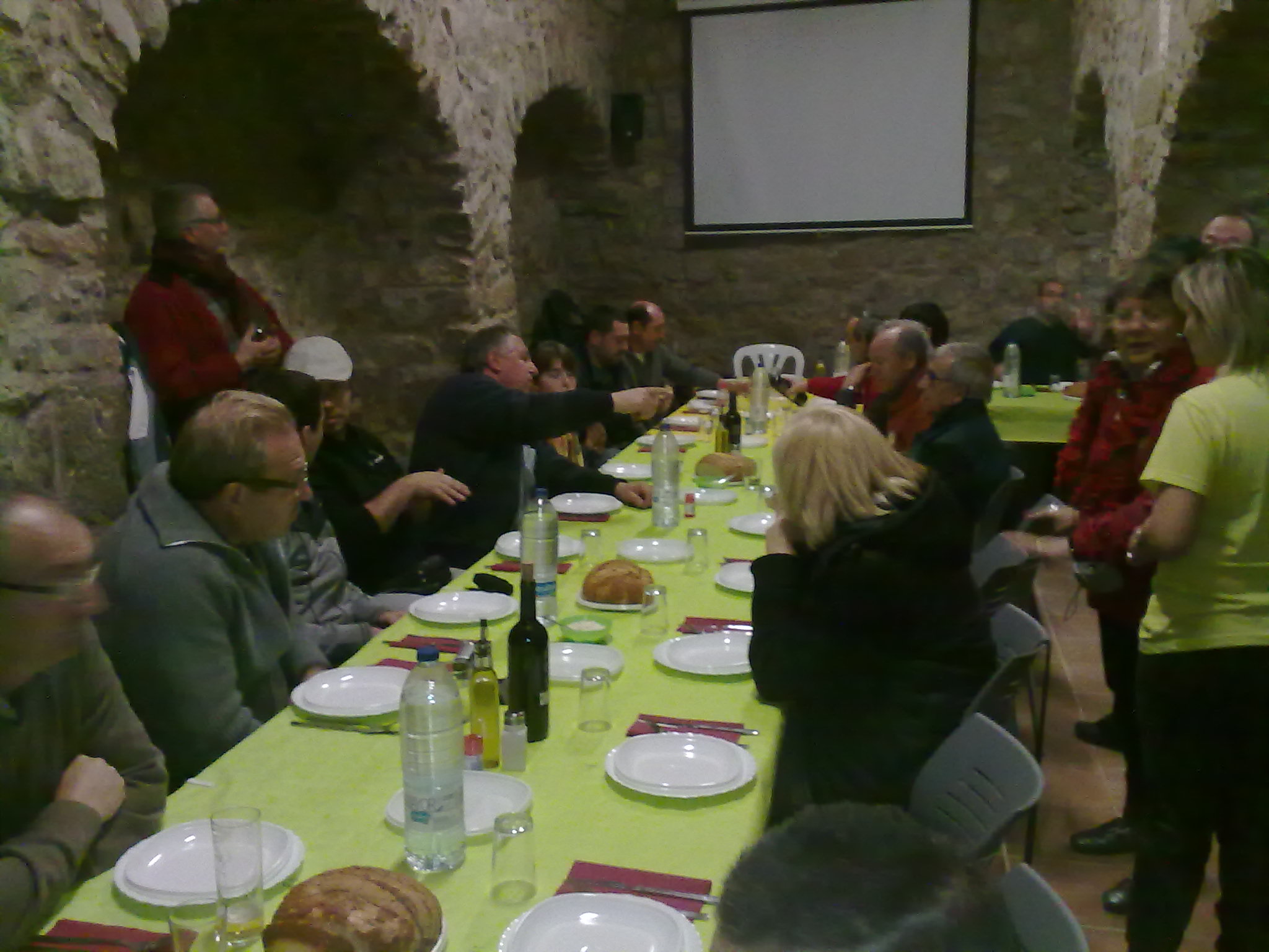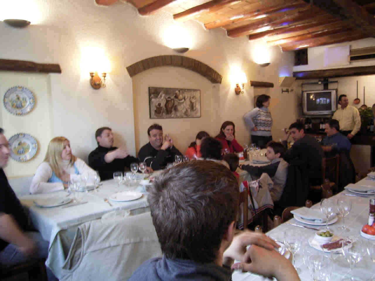 A continuación llega la hora de comer y salimos en ruta hacia castelló de Farfanya un pequeño pueblo con calles muy curiosas y perfectamente cementadas, muy bonito y digno de una visita mas tranquila. Aparcamiento en la plaza de la vila, reservada por la organización: Antonio Pomes y María Jesús esta ultima organizando y manejando al personal de manera impecable. Todo gracias a la ilusión y poder de convocatoria del Sr Cabasos el cerebro de esta concentración. Entramos en el restaurante y nos sorprendió por el tamaño, decoración y servicio rápido cordial y esmerado que tuvimos. Comedor adecuado para todos los participantes en esta concentración: