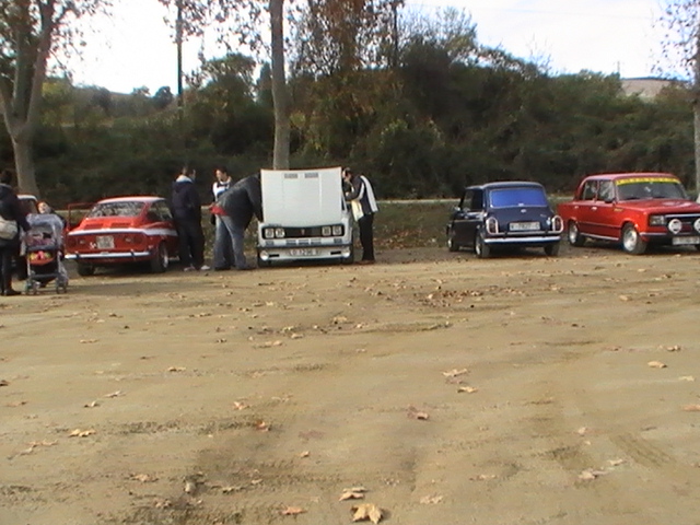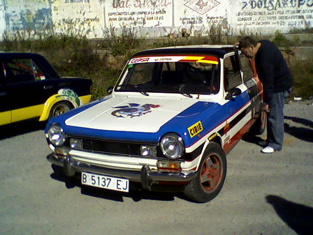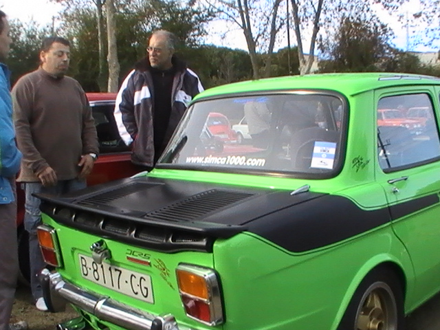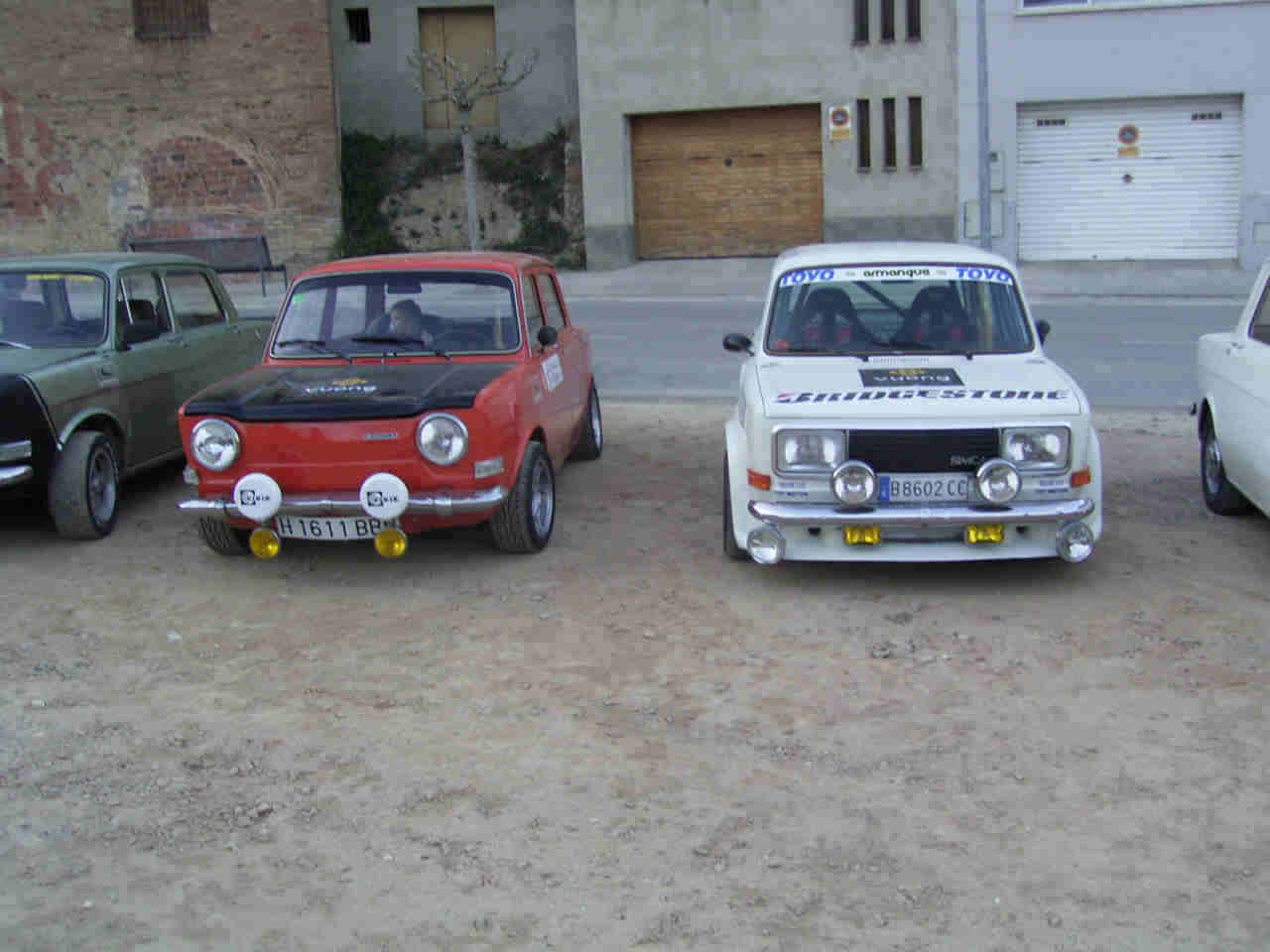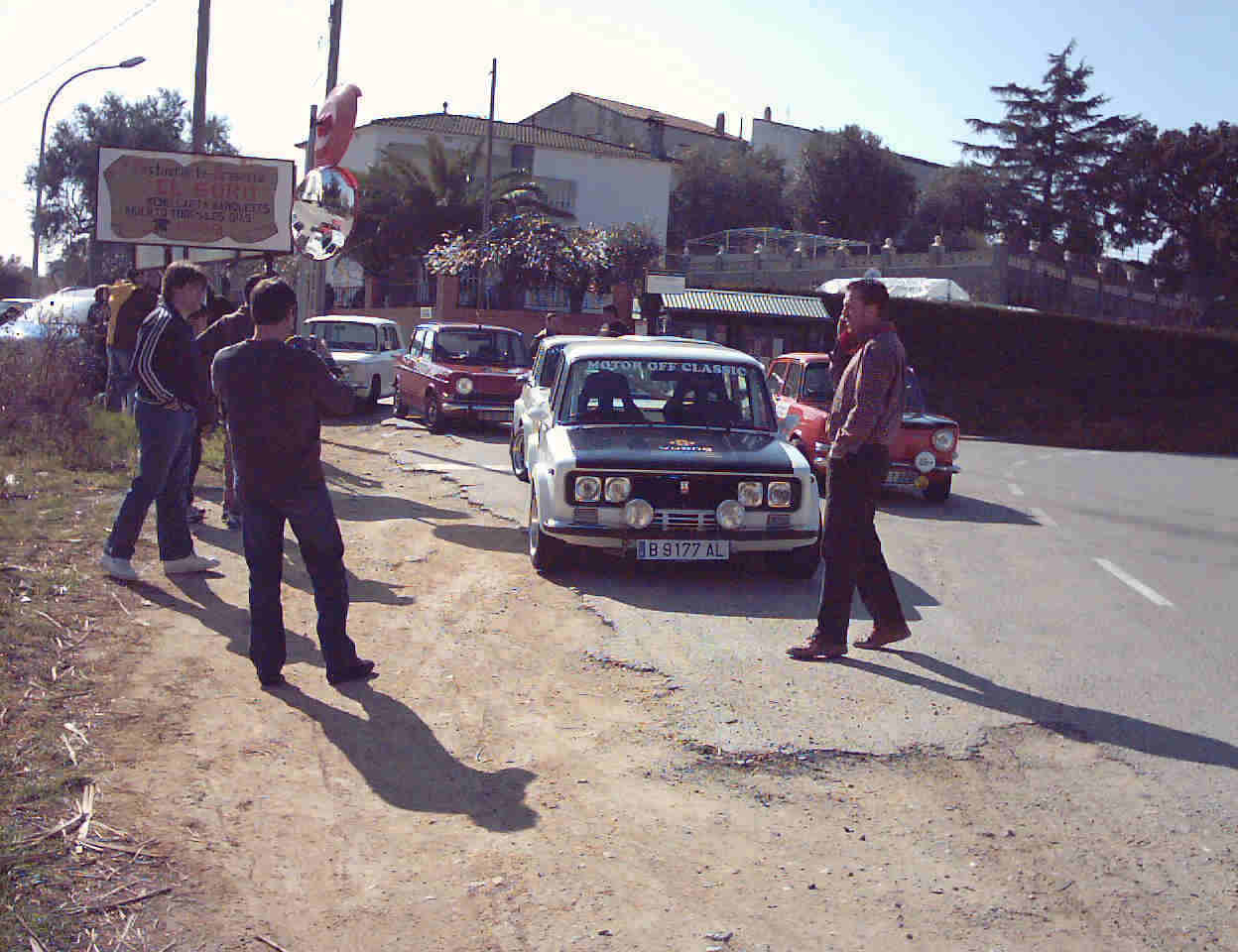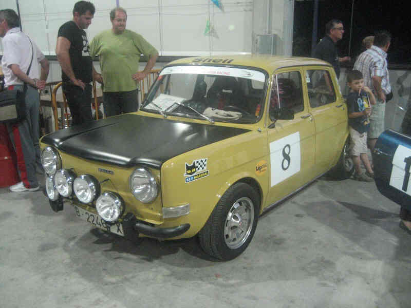No todo eran coches de carreras, ni mucho menos, los de serie como el 900 del avi josep, dos 900 mas, el 1000 de Manuel Rey, el automático de Manel, el 1000 Rallye de paco y mi Special. todos disfrutamos de una charla frente a nuestras maquinas, intercambiado ideas y experiencias con nuestros Simcas tanto en lo referente a mecánica, restauración y posible fabricación de algunos recambios en la actualidad (Paco ya fabrica llantas TARGA para simcas y otros clásicos, obsérvese las que lleva el 1430 ) También un R8 de serie, un 131 /1430 de mi hermano que de momento usa hasta que tenga listo su Simca 1000 que se encuentra en plena restauración. A eso de la 1 PM hemos salido en dirección hacia Ullastrell atravesando Barcelona y siendo el objetivo de muchas miradas curiosas que con asombro veían y oían pasar la procesión de simcas por la carretera de Sants. Verdaderamente nos miraban mas que si fuésemos en un coche ultra moderno, además la zona que atravesamos es muy concurrida hay bastante personal haciendo sus compras puesto que es zona comercial por excelencia. Llegados a la subida de Ullastrell, carretera secundaria que une los pueblos hacemos una parada para reunir a todos los participantes en un punto y subir a todo trapo (el que podía) hasta el restaurante el Taiet por dicha carretera, saliendo en primer lugar el 1430 (2000) detrás pisándole los talones y sin quedarse atrás en ningún momento el Simca1000 de Chico jugando con ventaja el 1430 que vive en la zona y conoce la carretera al dedillo, detrás Paco con su Rallye 1 seguido a duras penas por un servidor con un Special que poco a poco se quedaba sin fuelle frente a las "paellas" con subida del 7% y 9% en las que se hacia lo que se podía, el resto se quedaron atrás atascados por el trafico normal de la zona. Una vez en el restaurante nos hicimos las fotos de rigor y a comer... Por cierto muy bien. ![]() ![]() ![]() ![]() Ya dentro, la comida, presentación de los planes del club, preguntas, sugerencias, próximas concentraciones, y la despedida. Esperamos que la próxima seamos mas (que lo seremos). Por supuesto estáis todos invitados de antemano, muchas gracias y hasta pronto. 2ª Salida del Club a Hostalrich Nos encontramos en la Plaza de España de Barcelona, mientras llegaban los coches hicimos nuestra particular reunión para comentar nuestras experiencias, nos faltaba un coche que no llegaba, era Manel con su automático, los calentones no le dejaban y al final cuando llegó vimos que aquel coche no llegaba a ninguna parte, tenia un tapón del bloque roto, lo aparcamos y Manel se fue con mi hermano. Ya en ruta por las avenidas de la ciudad todo el mundo nos miraba a pesar de ser seis coches eso si, todos Simca 1000,el personal no esta acostumbrado a ver Simcas y menos seis ocupando tres carriles de la gran vía. No habíamos prácticamente salido de BCN cuando enfilando la Autopista uno de los coches tiene una dramática fuga de agua y hay que parar urgentemente, digo dramática porque se soltó un manguito y parecía una fuente, solventado el problema no sin una exhibición del estupendo físico de Manuel Rey en el arcen de la autopista mientras se ponía y se quitaba posteriormente el mono de trabajo seguimos la ruta. Parada programada en la gasolinera, retoque de algún platino, etc, etc. Tengo que aclarar que justo hasta la noche anterior se había trabajado en alguno de los coches para ponerlo a punto, puesto que por ejemplo el de mi hermano acababa de pasar la ITV para darlo de alta justo 4 días antes por lo tanto no habíamos tenido tiempo de probarlo a fondo. Por otra parte tengo que decir que funciono muy bien y sin problemas, a excepción de el ajuste de los platinos. Hicimos otra parada mas y posteriormente llegamos a Hostalrich, subimos al restaurante que es un estupendo castillo medieval y continuamos con nuestra conversaciones Simqueras. Nos llama otro componente de la reunión que venia desde Girona,"Me he quedado tirado con el R5" venia con este coche por que tenia una rueda rota en el Simca 1000 y claro un domingo conseguir una rueda de 215 o 220 no es nada fácil. No viene y decidimos subir a los comedores, la comida era fabulosa, muy bien condimentada y presentada, llegados a los postres continuamos con los temas del club, ruegos y preguntas. Otros eventos Crónica del Rally regional de Madrid 2004 (11/12/04)