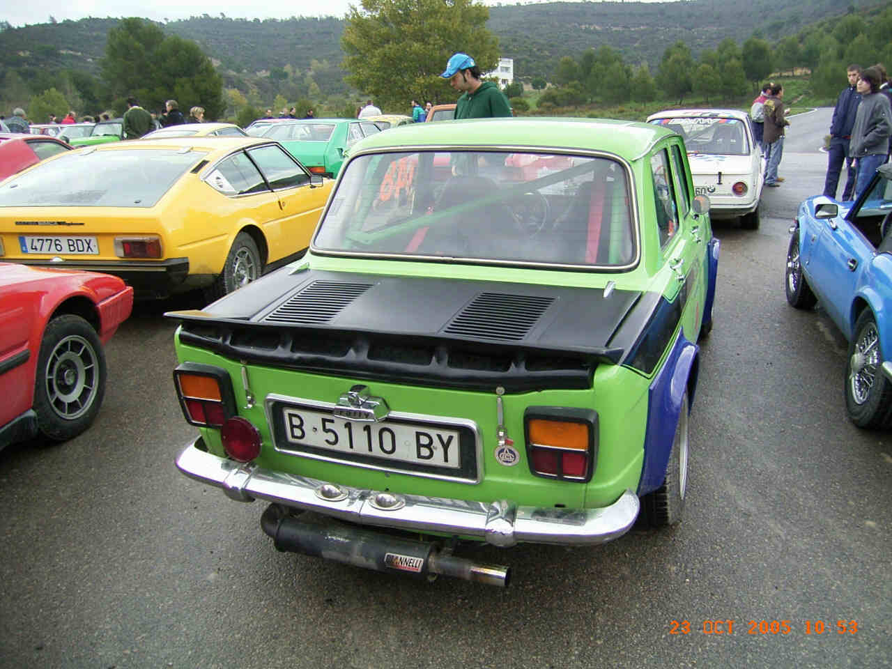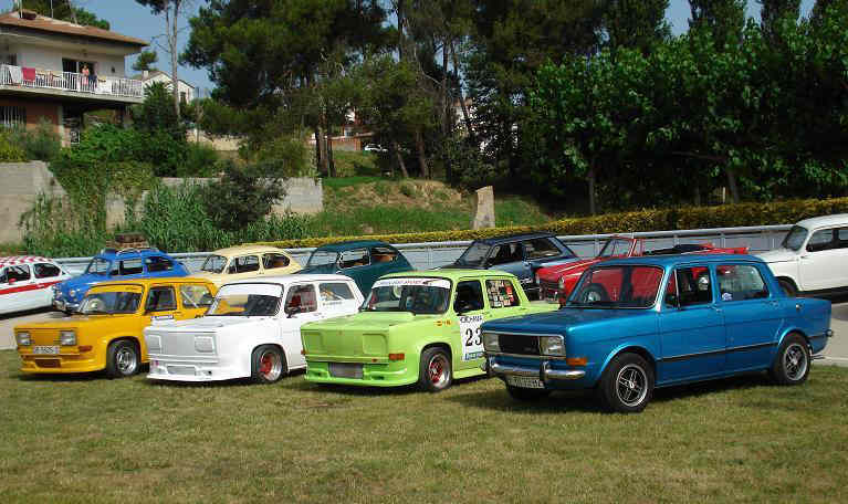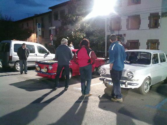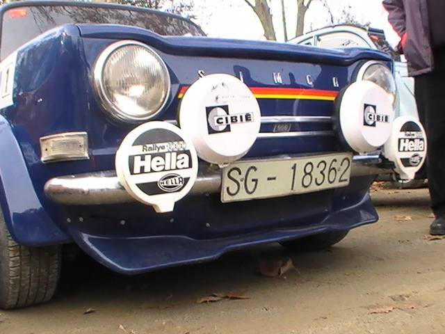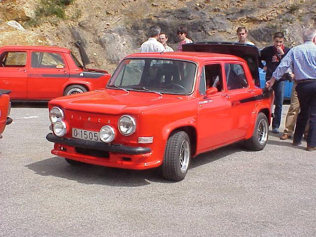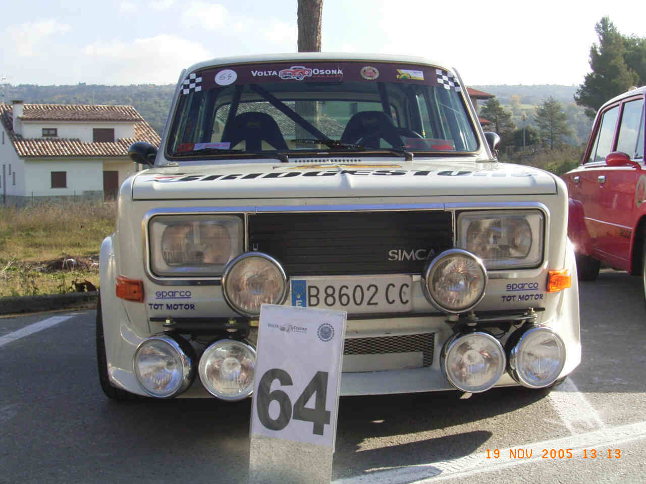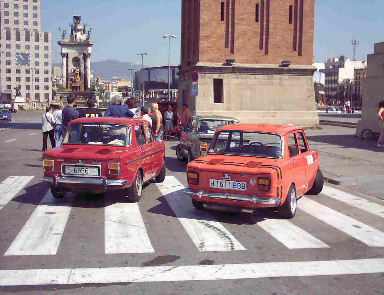 No todo eran coches de carreras, ni mucho menos, los de serie como el 900 del avi josep, dos 900 mas, el 1000 de Manuel Rey, el automático de Manel, el 1000 Rallye de paco y mi Special. todos disfrutamos de una charla frente a nuestras maquinas, intercambiado ideas y experiencias con nuestros Simcas tanto en lo referente a mecánica, restauración y posible fabricación de algunos recambios en la actualidad (Paco ya fabrica llantas TARGA para simcas y otros clásicos, obsérvese las que lleva el 1430 ) También un R8 de serie, un 131 /1430 de mi hermano que de momento usa hasta que tenga listo su Simca 1000 que se encuentra en plena restauración. A eso de la 1 PM hemos salido en dirección hacia Ullastrell atravesando Barcelona y siendo el objetivo de muchas miradas curiosas que con asombro veían y oían pasar la procesión de simcas por la carretera de Sants. Verdaderamente nos miraban mas que si fuésemos en un coche ultra moderno, además la zona que atravesamos es muy concurrida hay bastante personal haciendo sus compras puesto que es zona comercial por excelencia. Llegados a la subida de Ullastrell, carretera secundaria que une los pueblos hacemos una parada para reunir a todos los participantes en un punto y subir a todo trapo (el que podía) hasta el restaurante el Taiet por dicha carretera, saliendo en primer lugar el 1430 (2000) detrás pisándole los talones y sin quedarse atrás en ningún momento el Simca1000 de Chico jugando con ventaja el 1430 que vive en la zona y conoce la carretera al dedillo, detrás Paco con su Rallye 1 seguido a duras penas por un servidor con un Special que poco a poco se quedaba sin fuelle frente a las "paellas" con subida del 7% y 9% en las que se hacia lo que se podía, el resto se quedaron atrás atascados por el trafico normal de la zona. Una vez en el restaurante nos hicimos las fotos de rigor y a comer... Por cierto muy bien. ![]() ![]() ![]() ![]() Ya dentro, la comida, presentación de los planes del club, preguntas, sugerencias, próximas concentraciones, y la despedida. Esperamos que la próxima seamos mas (que lo seremos). Por supuesto estáis todos invitados de antemano, muchas gracias y hasta pronto. 2ª Salida del Club a Hostalrich Nos encontramos en la Plaza de España de Barcelona, mientras llegaban los coches hicimos nuestra particular reunión para comentar nuestras experiencias, nos faltaba un coche que no llegaba, era Manel con su automático, los calentones no le dejaban y al final cuando llegó vimos que aquel coche no llegaba a ninguna parte, tenia un tapón del bloque roto, lo aparcamos y Manel se fue con mi hermano. Ya en ruta por las avenidas de la ciudad todo el mundo nos miraba a pesar de ser seis coches eso si, todos Simca 1000,el personal no esta acostumbrado a ver Simcas y menos seis ocupando tres carriles de la gran vía. No habíamos prácticamente salido de BCN cuando enfilando la Autopista uno de los coches tiene una dramática fuga de agua y hay que parar urgentemente, digo dramática porque se soltó un manguito y parecía una fuente, solventado el problema no sin una exhibición del estupendo físico de Manuel Rey en el arcen de la autopista mientras se ponía y se quitaba posteriormente el mono de trabajo seguimos la ruta. Parada programada en la gasolinera, retoque de algún platino, etc, etc. Tengo que aclarar que justo hasta la noche anterior se había trabajado en alguno de los coches para ponerlo a punto, puesto que por ejemplo el de mi hermano acababa de pasar la ITV para darlo de alta justo 4 días antes por lo tanto no habíamos tenido tiempo de probarlo a fondo. Por otra parte tengo que decir que funciono muy bien y sin problemas, a excepción de el ajuste de los platinos. Hicimos otra parada mas y posteriormente llegamos a Hostalrich, subimos al restaurante que es un estupendo castillo medieval y continuamos con nuestra conversaciones Simqueras. Nos llama otro componente de la reunión que venia desde Girona,"Me he quedado tirado con el R5" venia con este coche por que tenia una rueda rota en el Simca 1000 y claro un domingo conseguir una rueda de 215 o 220 no es nada fácil. No viene y decidimos subir a los comedores, la comida era fabulosa, muy bien condimentada y presentada, llegados a los postres continuamos con los temas del club, ruegos y preguntas. Otros eventos Crónica del Rally regional de Madrid 2004 (11/12/04)
