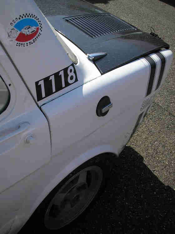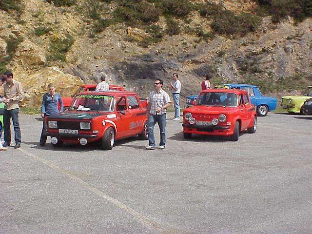 A falta de este nos a acompañado el Simca de Chico, ciertamente era el mas llamativo del grupo por su condición deportiva y totalmente homologado para circular por carretera con unas llantas Braid, con neumáticos delante de 175/50R13 y detrás 225/45/13 por su puesto con aletines mas anchos, mecánica potenciada, Baquets, Barras, etc. Total una autentica bomba de relojería lista para correr. También nos han acompañado otros clásicos como un 1430 (2000) preparado para volar.