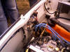 Una pinza de freno clavada a causa de un latiguillo viejo, tuve que volver a mi casa tirando de freno de mano para no clavar el disco izquierdo. Esto que veis es el motor de un Cryhsler 150 totalmente restaurado tal y como salido de fabrica Quedada en Tarrasa Sábado día 30(2006) centro comercial