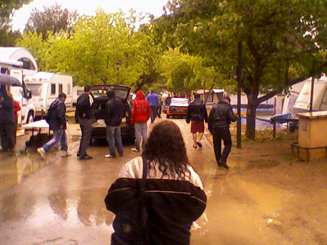 La entrada al camping era un lago Esto es la puerta del bar. Como se aprecia era otro lago a un así salimos abrimos nuestros motores y comentamos entusiasmados nuestras experiencias con el agua calada hasta los huesos Esto es la zona de exposición que la organización tenia montado segua lloviendo y acabo convertido en un patatal, una lastima
