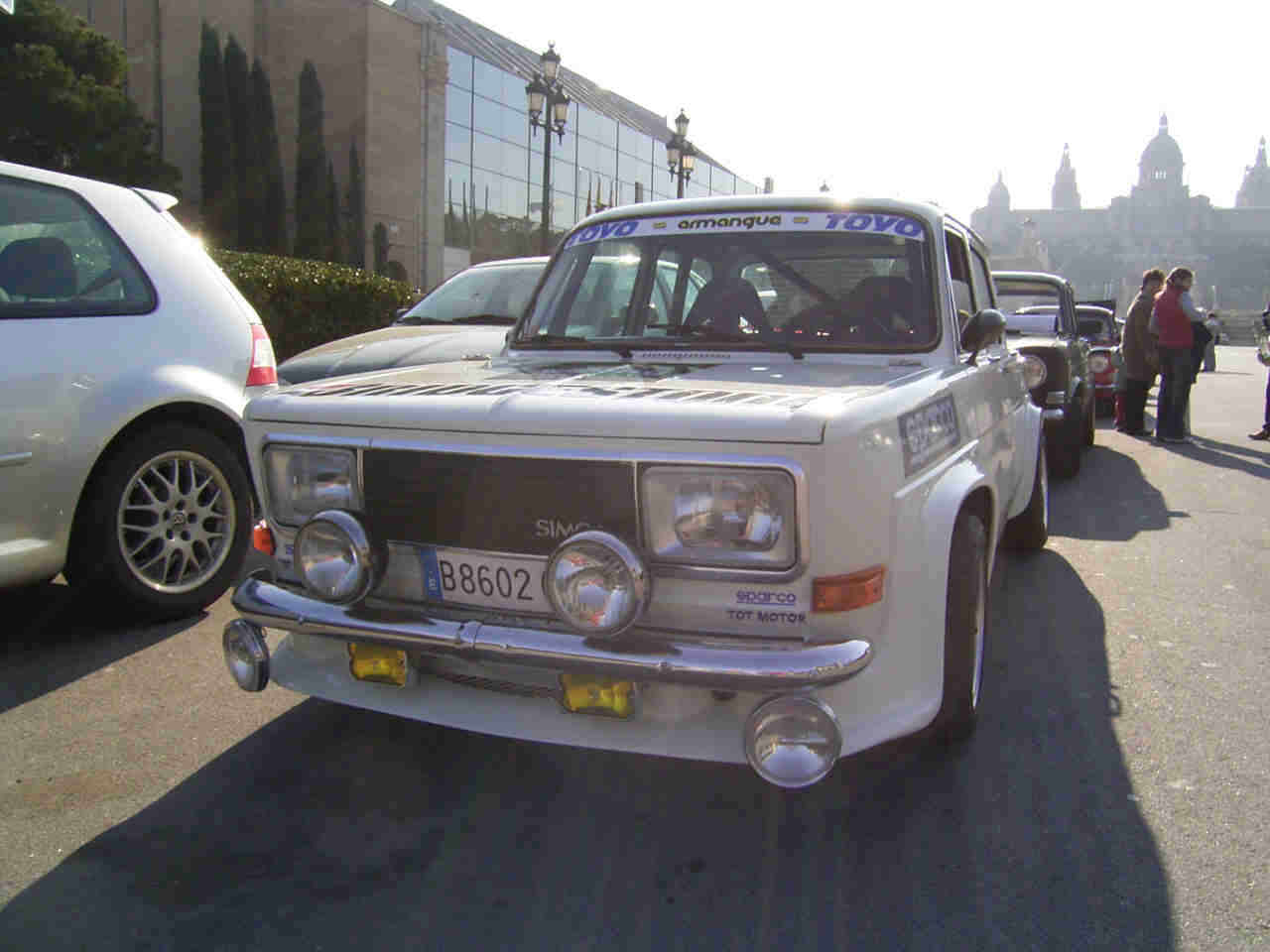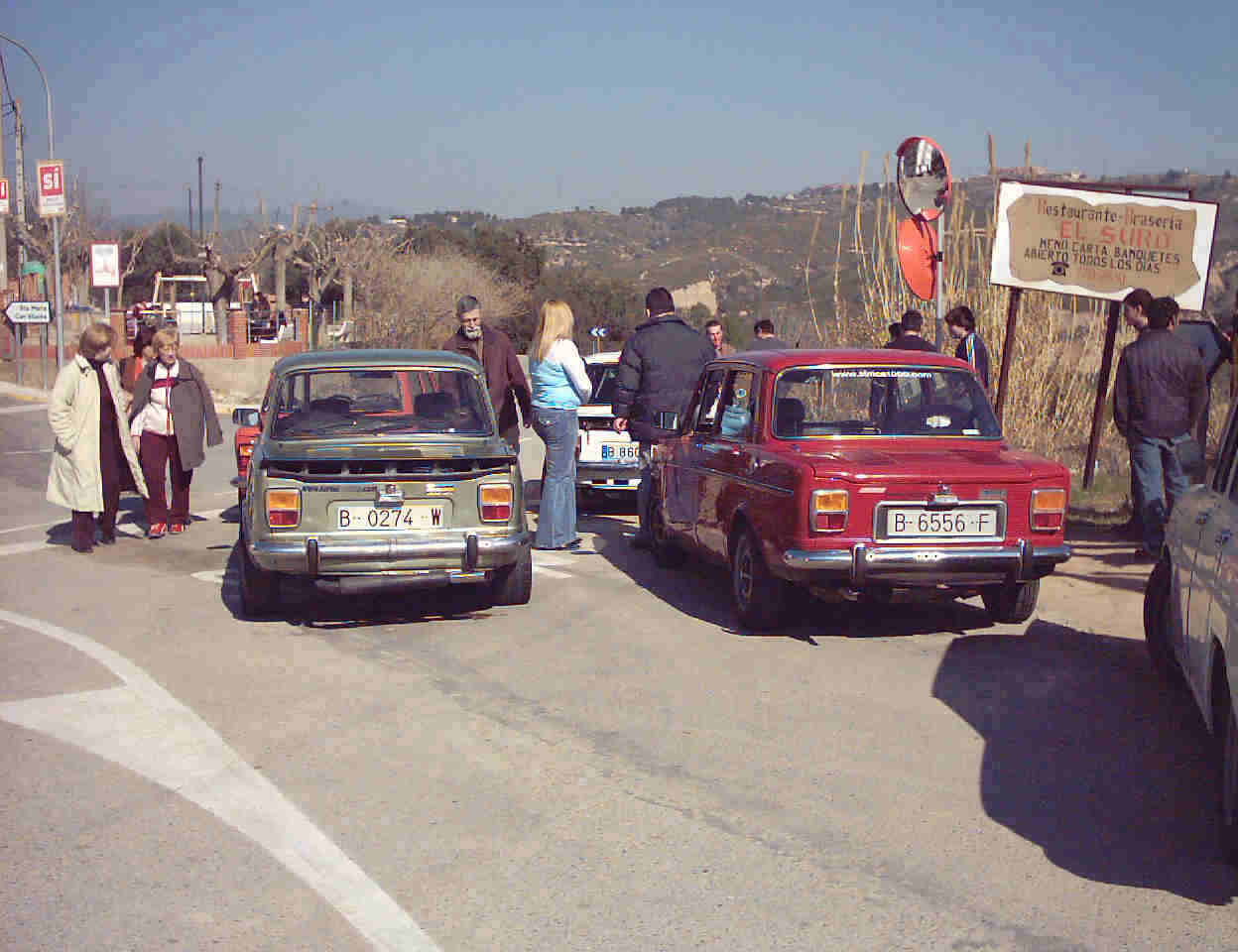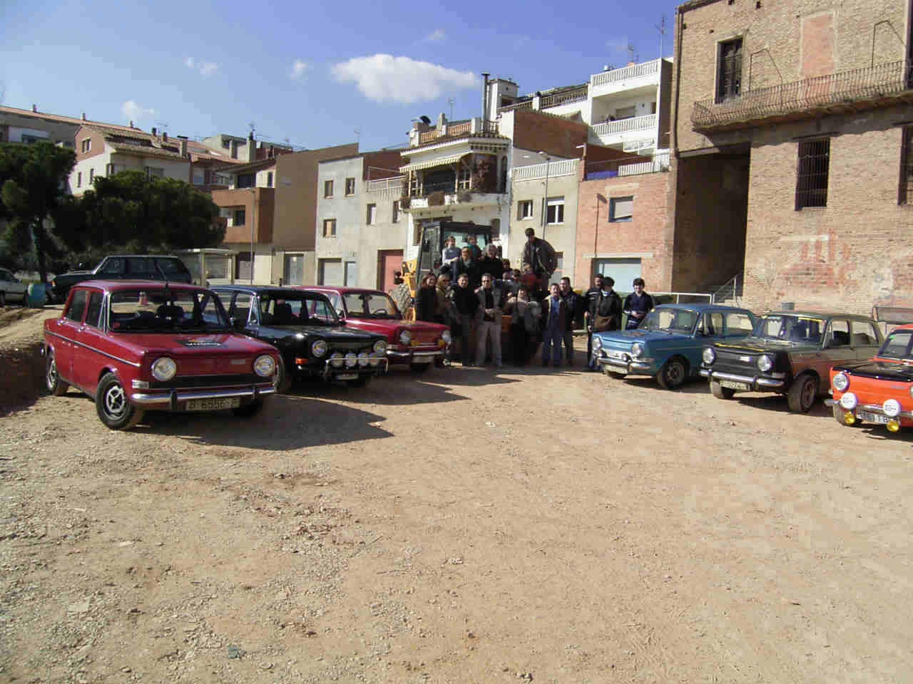 Aparcados en el pabellón de deportes que mas tarde se lleno a rebosar de vehículos de época y clásicos. 1ª Salida del club a Ullastrell Eran las 10 de la mañana del Sábado día 19 de Febrero de 2005 y los Simcas llegaban poco a poco a la Av. Maria cristina entre plaza España y el Palacio de congresos de Barcelona, para ser la 1ª salida organizada por el nuevo club Simca1000 con poca difusión (de momento, todo se andará) Hemos conseguido reunir nueve Simcas 1000 de los cuales uno no a podido venir circulando por que era de competición pura (sin matricular) su propietario Toni lo a traído remolcado con su Patrol.