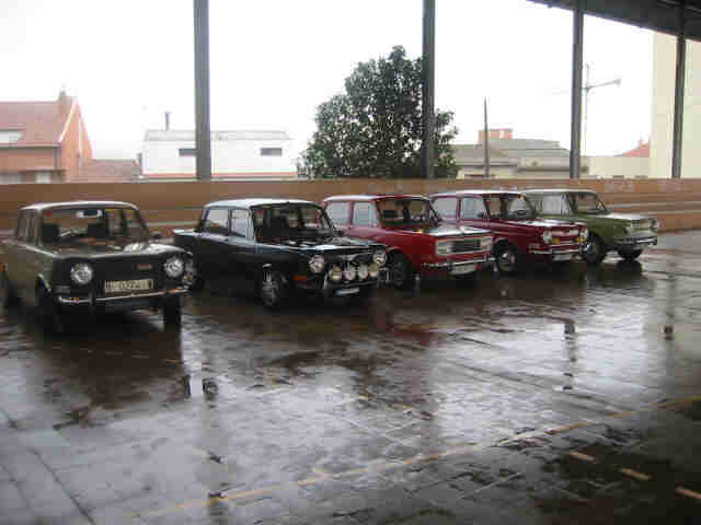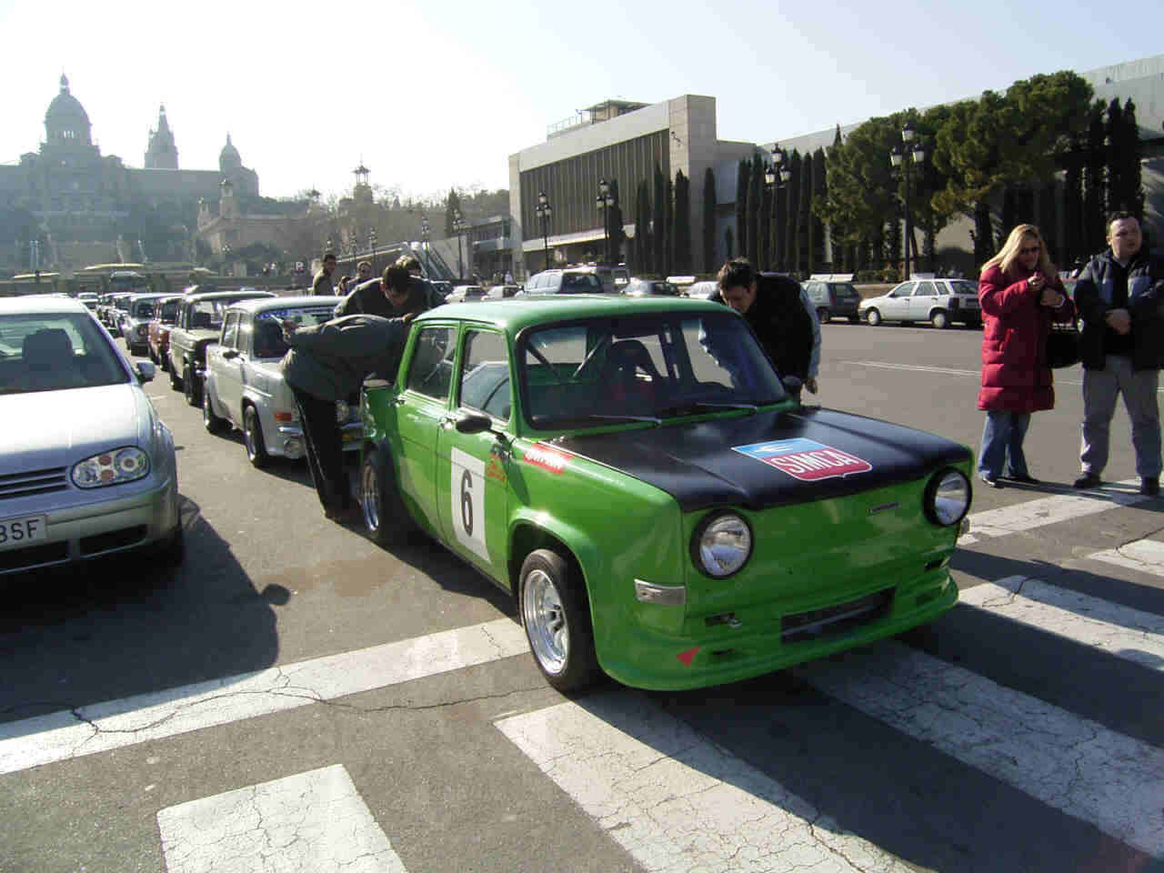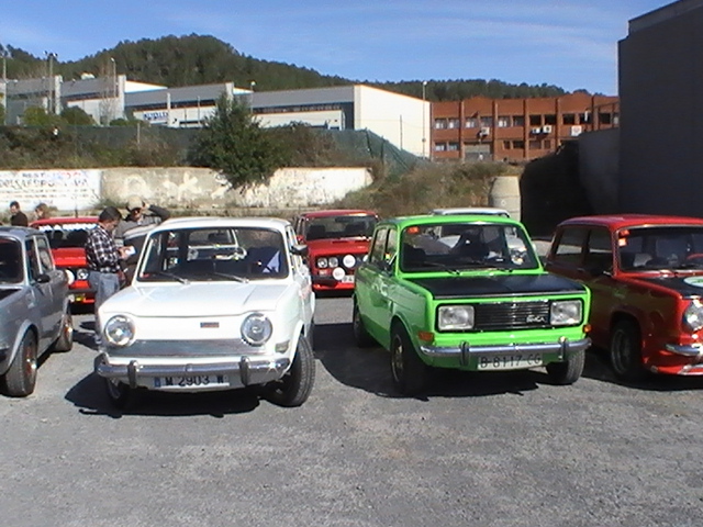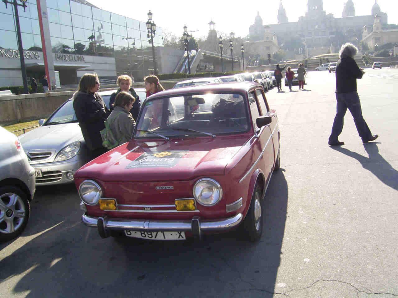 Aparcados en el pabellón de deportes que mas tarde se lleno a rebosar de vehículos de época y clásicos. 1ª Salida del club a Ullastrell Eran las 10 de la mañana del Sábado día 19 de Febrero de 2005 y los Simcas llegaban poco a poco a la Av. Maria cristina entre plaza España y el Palacio de congresos de Barcelona, para ser la 1ª salida organizada por el nuevo club Simca1000 con poca difusión (de momento, todo se andará) Hemos conseguido reunir nueve Simcas 1000 de los cuales uno no a podido venir circulando por que era de competición pura (sin matricular) su propietario Toni lo a traído remolcado con su Patrol.