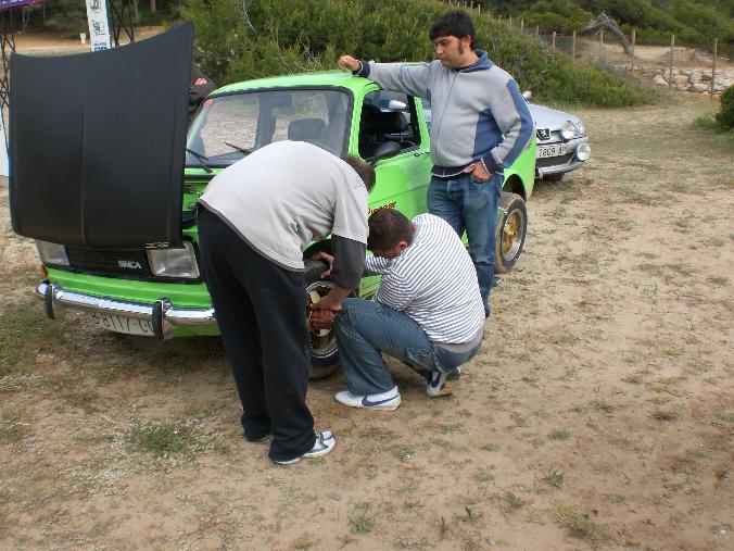Tuvimos algunos contratiempos con algunos coches, que gracias al ingenio de algunos y las ideas de otros solventamos. Calentones, ruedas que pierden los cuatro tornillos y nos adelantan etc, etc